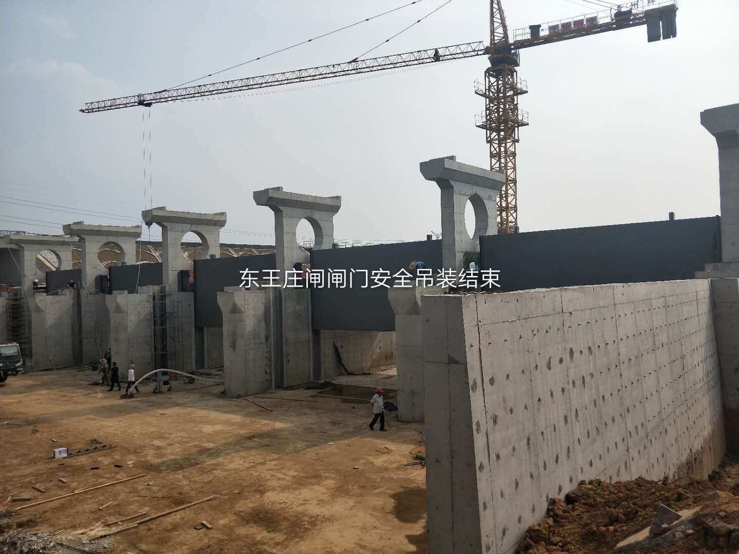 6月1日下午,棗莊市水利開(kāi)發(fā)有限公司承建的棗莊市市中區(qū)東王莊閘除險(xiǎn)加固工程安全順利地完成閘門(mén)的全部吊裝任務(wù)。