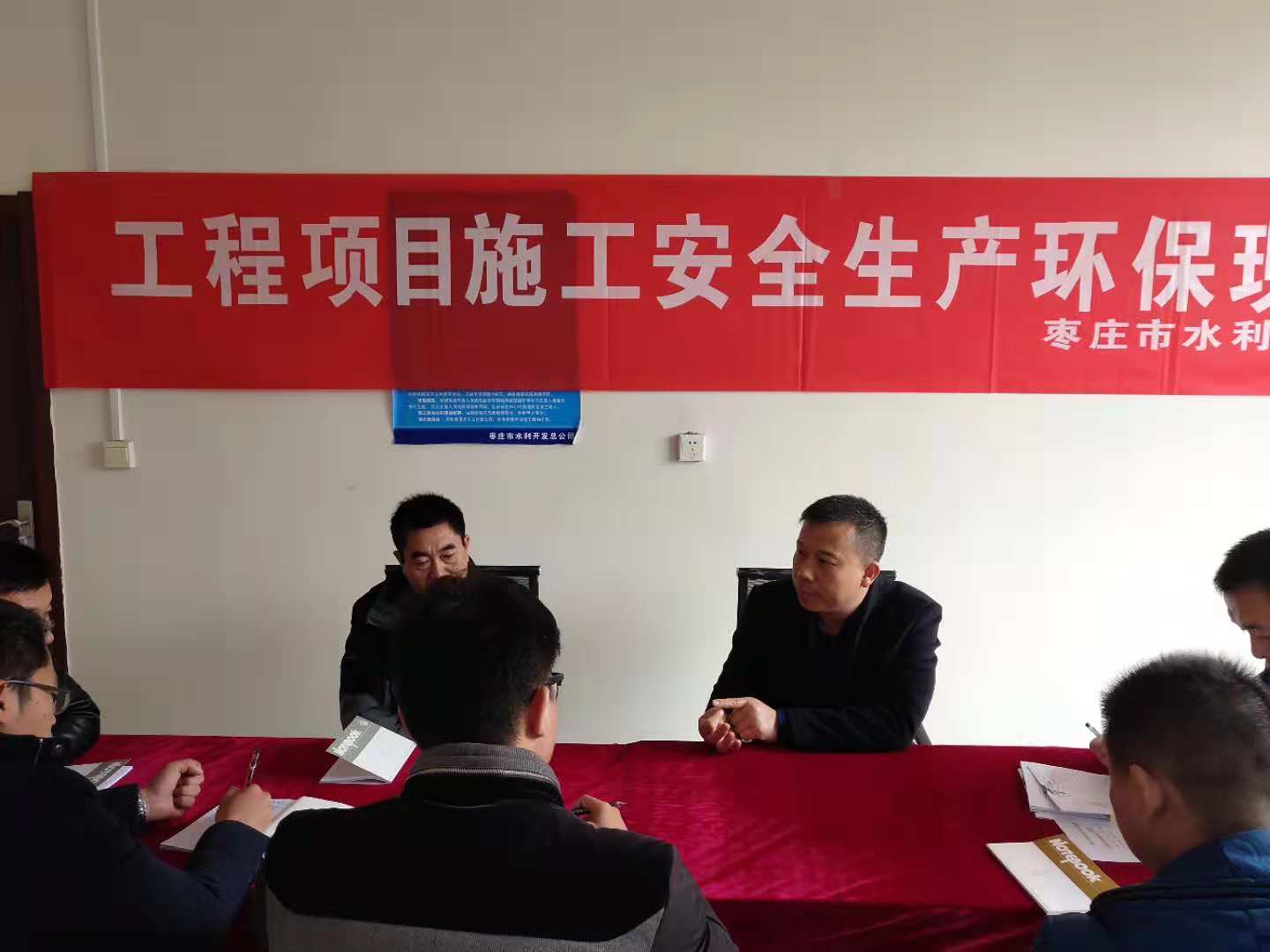 2018年12月7日上午,棗莊市水利開發(fā)總公司副總經(jīng)理高明同志帶領(lǐng)安全環(huán)保部一行到薛城區(qū)沙溝鎮(zhèn)薛城區(qū)淮河流域平原老洼地治理南四湖片區(qū)進(jìn)行現(xiàn)場(chǎng)安全督查部署,并邀請(qǐng)監(jiān)理部李季及監(jiān)理人員、項(xiàng)目部全體到項(xiàng)目經(jīng)理部參加項(xiàng)目施工安全生產(chǎn)環(huán)?,F(xiàn)場(chǎng)會(huì)議。