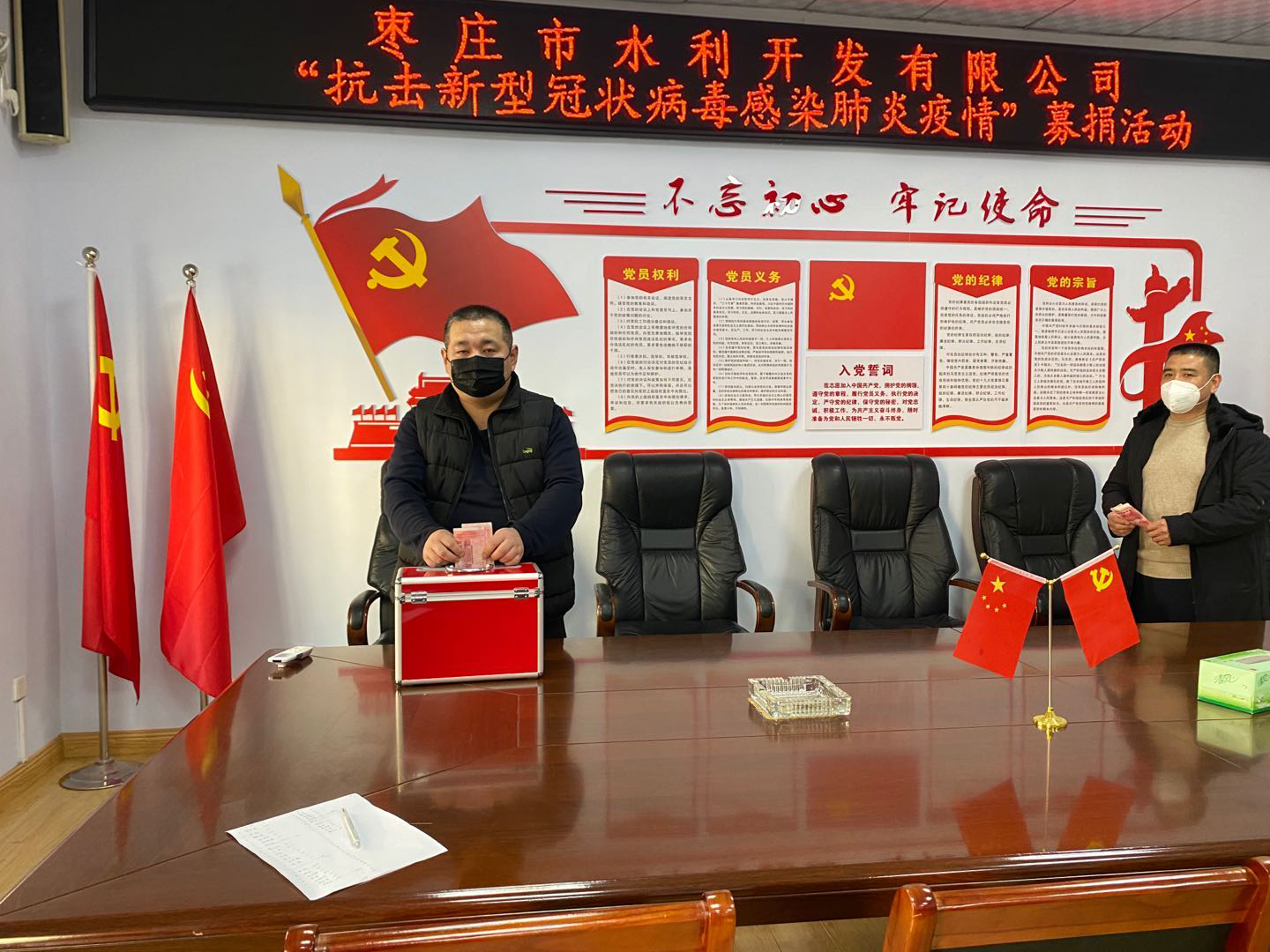 疫情無情,人間有愛。為支持新冠肺炎疫情防控工作,棗莊市水利開發(fā)有限公司執(zhí)行董事、總經(jīng)理岳磊攜公司全體黨員干部職工,于3月2日組織開展了抗擊疫情獻(xiàn)愛心捐款活動(dòng),以捐款的方式支援疫情防控工作,積極為抗擊疫情貢獻(xiàn)力量。