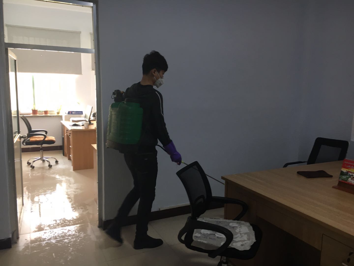 組織人員第一時間對工作場所進行環(huán)境衛(wèi)生清潔消毒工作。